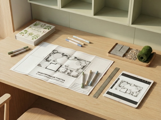 После выезда фиксируем ТЗ и делаем план зонирования. Это основа всего проекта. На этом этапе вы видите, как будет организована территория: где парковка, где дорожки, где газон, где посадки, где зона отдыха.